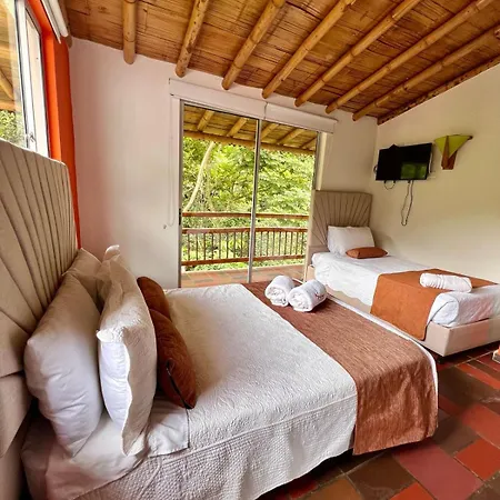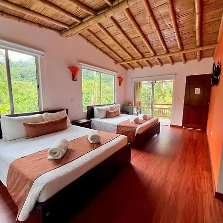 Hotel Y Termales Las Heliconias的客人可以从豪华四人房间,家庭标准房间 和豪华大号床房间选择一间。 - ❓